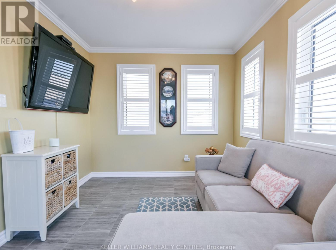 This exceptional bungalow is located in the sought-after Lakepoint Village adult lifestyle community, offering peaceful country living just minutes from Orillia. This spacious 1,566 sq ft home features a bright open-concept layout with two generous bedrooms plus a versatile office/den. Inside, hardwood floors and ceramic tile create a warm, modern feel throughout. The updated kitchen includes quartz countertops, a gas range, a raised breakfast bar, and stainless steel accents. The primary suite offers a relaxing retreat, while the sun-filled sunroom opens to a private backyard oasis. Additional highlights include an insulated two-car garage, a rare five-foot crawl space for extra storage, and a full backup generator for year-round peace of mind. With no land transfer tax under the land lease structure, this home provides easy, low-maintenance living. The $720 monthly fee covers property taxes, water, snow removal, and road maintenance, allowing you to fully enjoy the vibrant community and nearby lakes of Simcoe County.