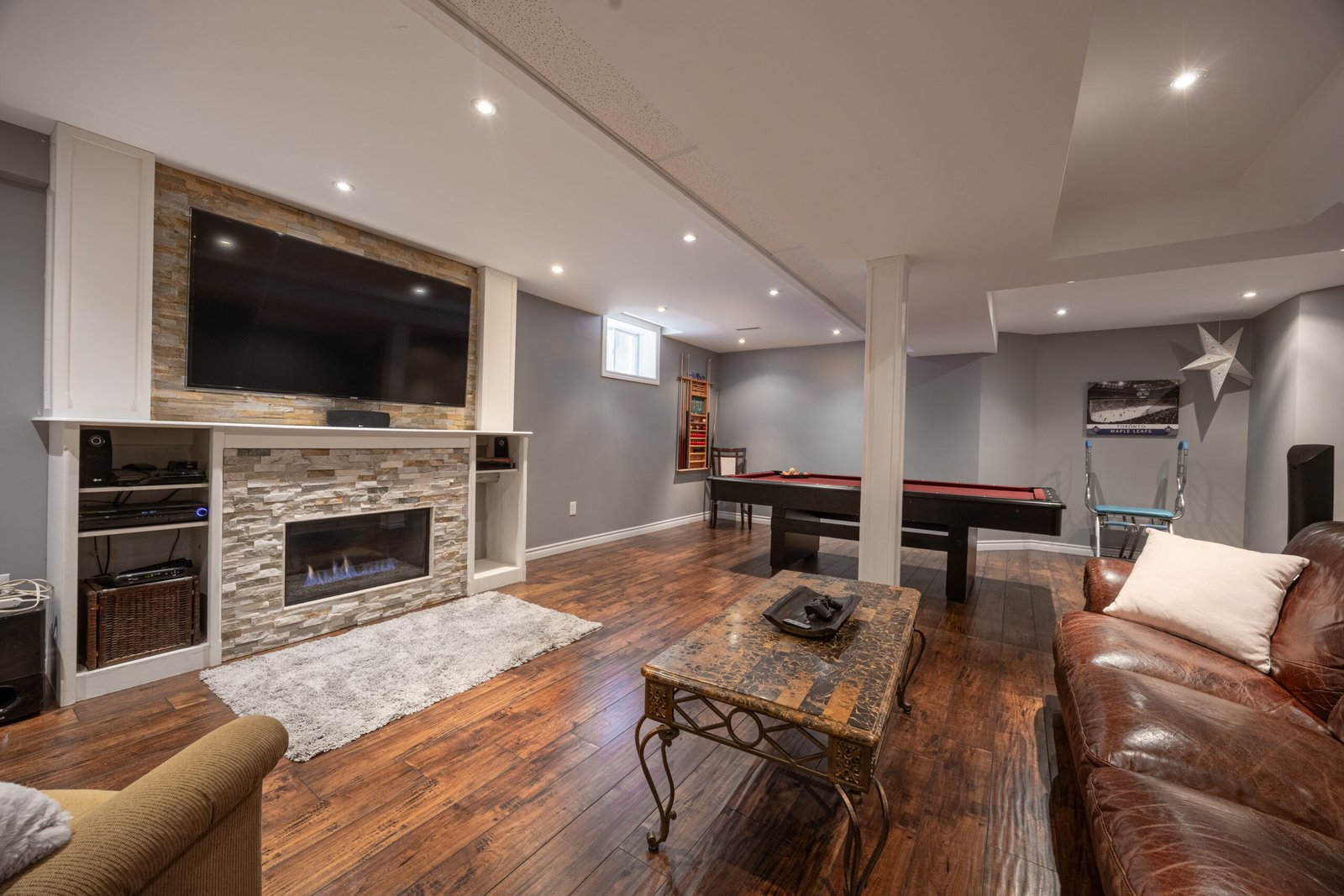 The modern kitchen (2022) includes under-cabinet lighting, while the cozy family room with a fireplace and bright dining area create a welcoming space for everyday living and entertaining. The finished basement adds flexibility with an additional bedroom, recreation room, second fireplace, and walk-in shower — perfect for guests or extra living space.